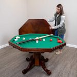 If you want a more sophisticated choice, try the Fairview Game Rooms Combination 3-in-1 Game/Dining Table. The hexagon-shaped table allows you to play both pool and poker, and its solid wood construction will be the envy of everyone.