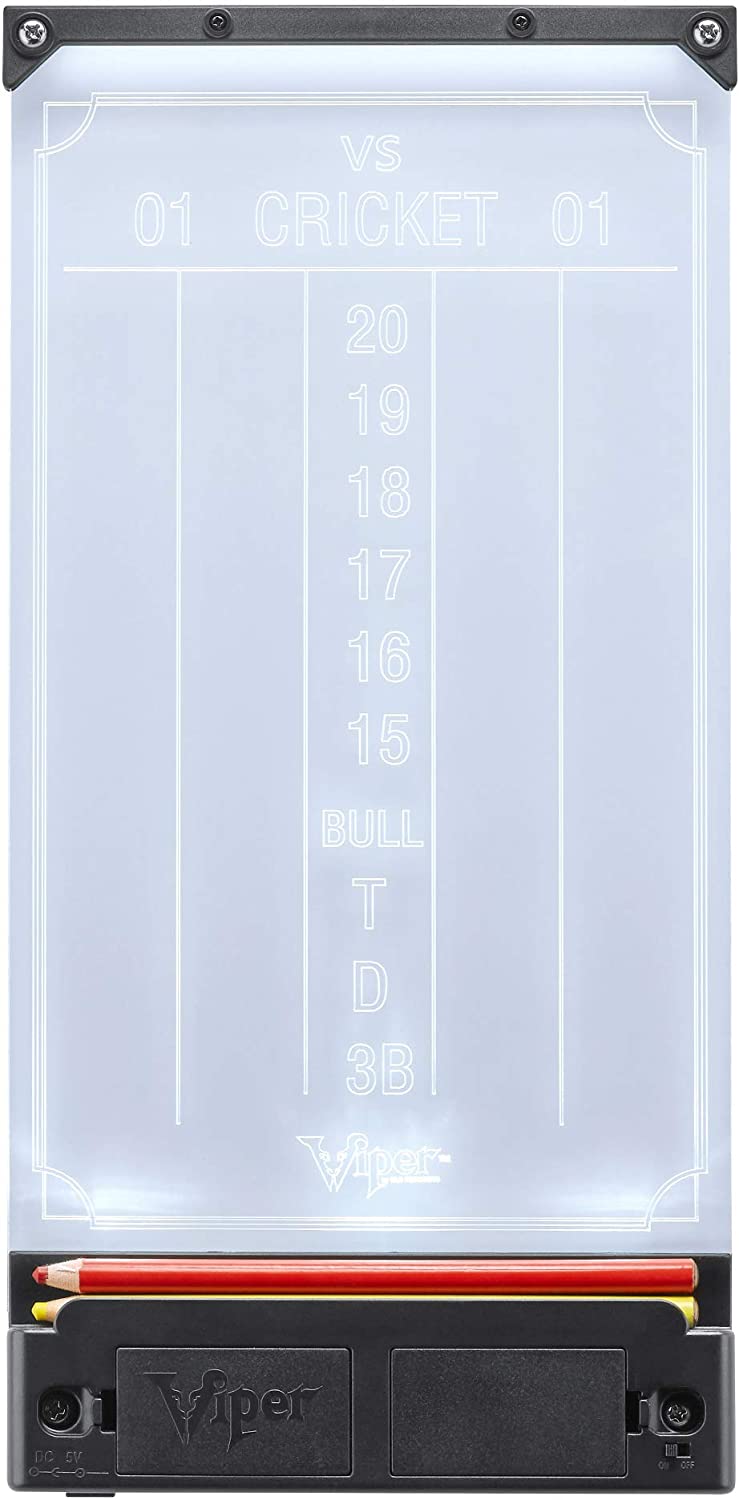 The Viper Illumiscore is a great dart cricket scoreboard, which can also be used for 301-901 games. It looks cool, with sidelights that illuminate the scoreboard, making it easier to see, even if you’re across the room.
