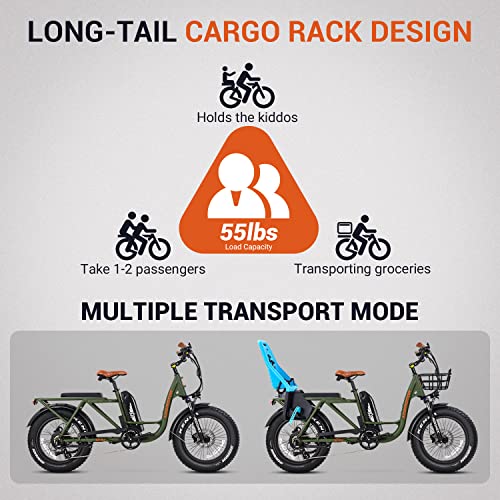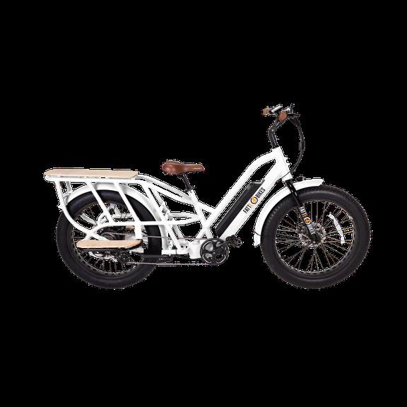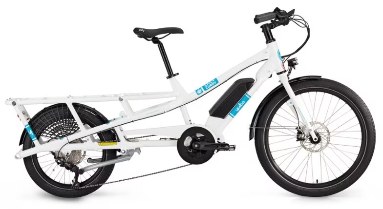 The “long-tail” style of cargo e-bikes features an extended carrying frame above the rear wheel, offering more space for carrying your load due to the increased length and stronger frame compared to a pannier.