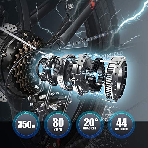 The 250-watt brushless geared DC motor of this small electric bike gives you plenty of power to get around, and the removable 36V 7Ah battery of this light folding electric bike gives you up to 30 miles of range on a single charge.