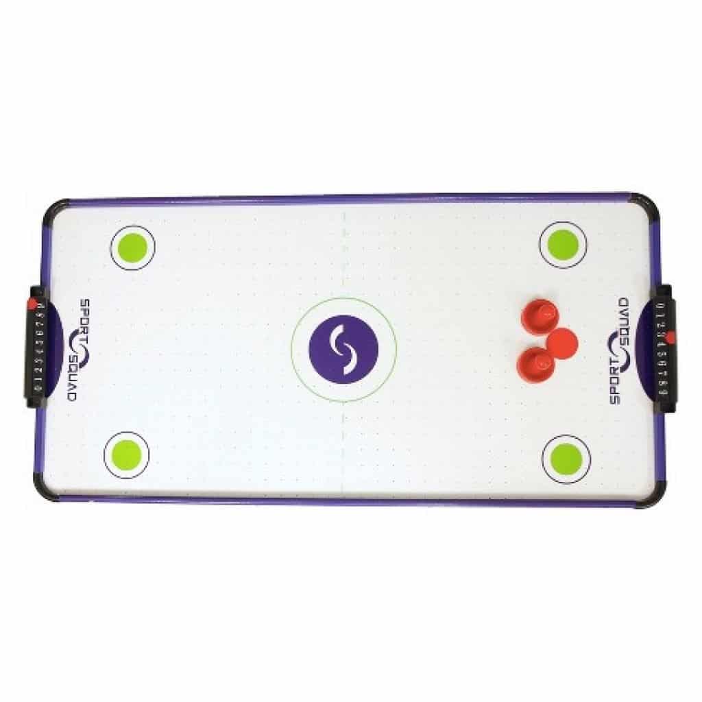 For a fun party game style of mini air hockey table, the Rally and Roar Tabletop Air Hockey Table is a fantastic choice. It is 40 inches long which is the standard size for mini tables.
