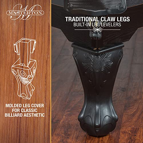 The EastPoint Sports Masterton Billiard Table brings timeless elegance and hours of entertainment to any home game room, basement, or family space. Designed with both aesthetic appeal and durability in mind, this table features a classic ball and claw leg design, a rich wood-tone finish, and parlor-style drop pockets, making it a stylish focal point in any recreational setting. The Mastertons traditional appearance is more than just surface-deep—its sturdy engineered wood construction and reinforced support braces provide a stable playing platform that resists warping and long-term wear, even with frequent use.
